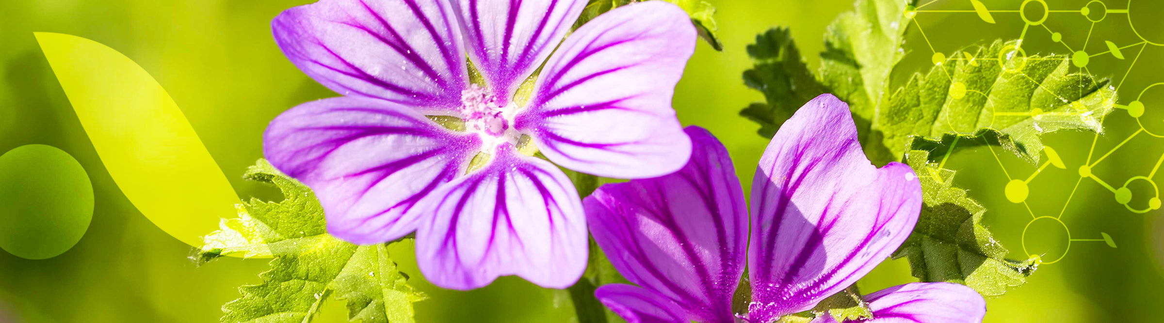 Les feuilles et fleurs de la Mauve sont riches en vitamines C et E, acide gras insaturés (par exemple l’acide alpha-linolénique), terpènes (agents antimicrobiens) et polyphénols. Mais les propriétés de la Mauve sont surtout liées aux mucilages qu’elle contient.