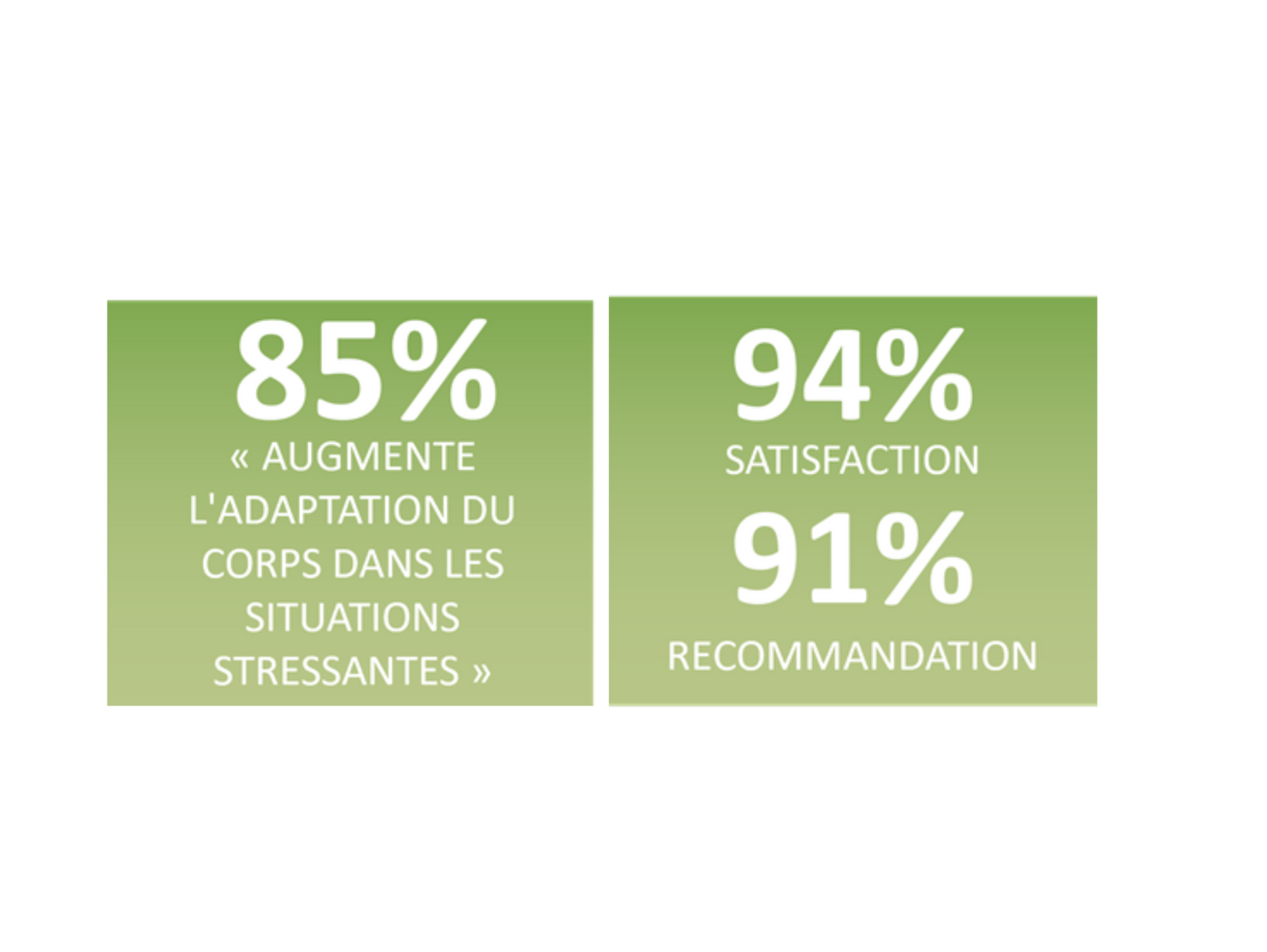 - 85% des personnes se déclarent satisfaits que le produit aide à augmenter l'adaptation du corps dans les situations stressantes**.